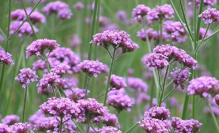 马鞭草为马鞭草科马鞭草属的多年生草本植物,花色丰富,从粉、红、蓝、白、双色等皆有,花量大、颜色鲜艳、易于组合排列,常作悬挂篮或阳台边缘吊种。